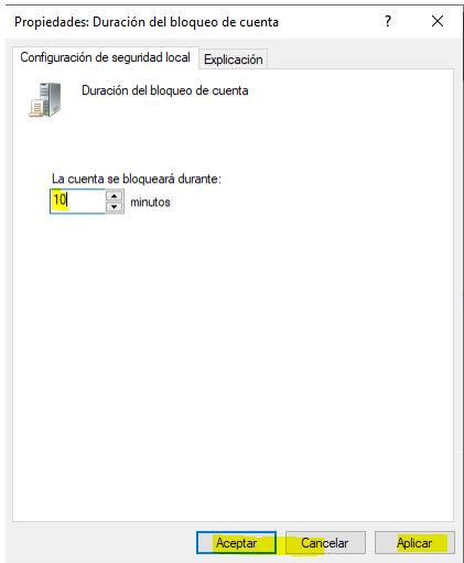 Ve a Directiva de bloqueo de cuenta. Configura: